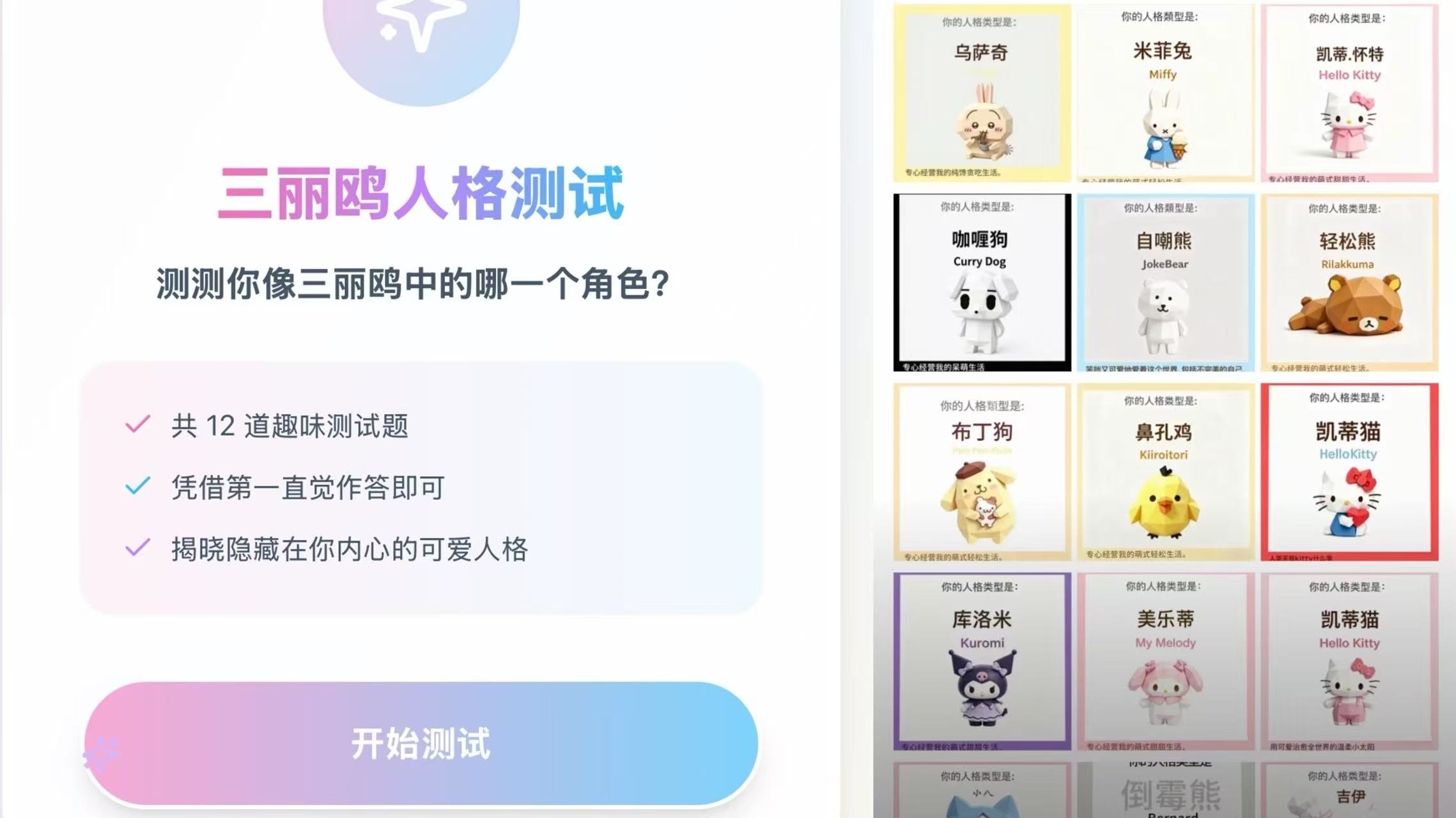 sbti测试 mbti测试 三丽鸥人格测试 时代峰峻人格测试 hellokitty人格测试 mbti人格测试 tf家族真命天子测试入口 美乐蒂人格测试 人格测试 人格测试链接